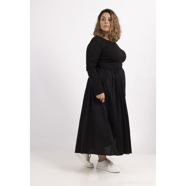 Beschreibung Mittellanges Kleid aus zwei Materialien: Das Oberteil ist aus...