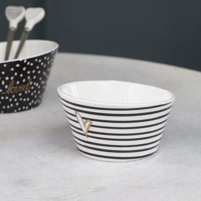 Die Dots & Stripes Heart Bowl ist eine weiße Schale...